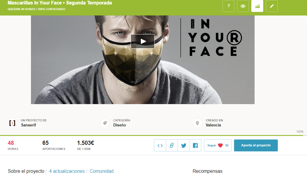 Íbamos a recordaros que sólo quedan 48h para que acabe el proyecto de #mascarillas de inyourface en Verkami en https://vkm.is/inyourface2 y…