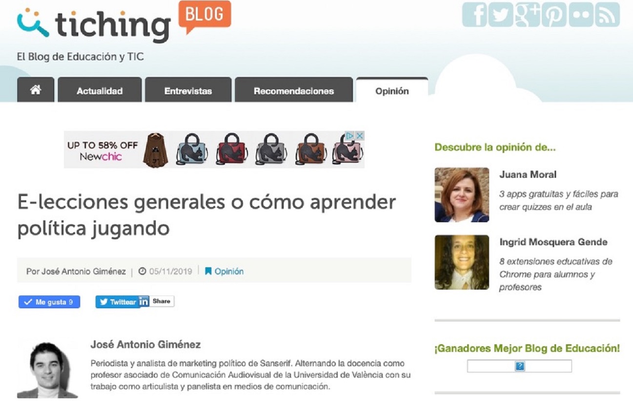 05 Nov Tiching: e-lecciones generales o cómo aprender política jugando