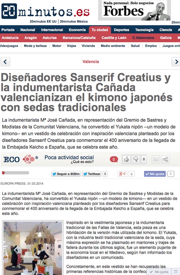 20 Minutos: Sanserif Creatius y la indumentarista Cañada valencianizan el kimono japonés