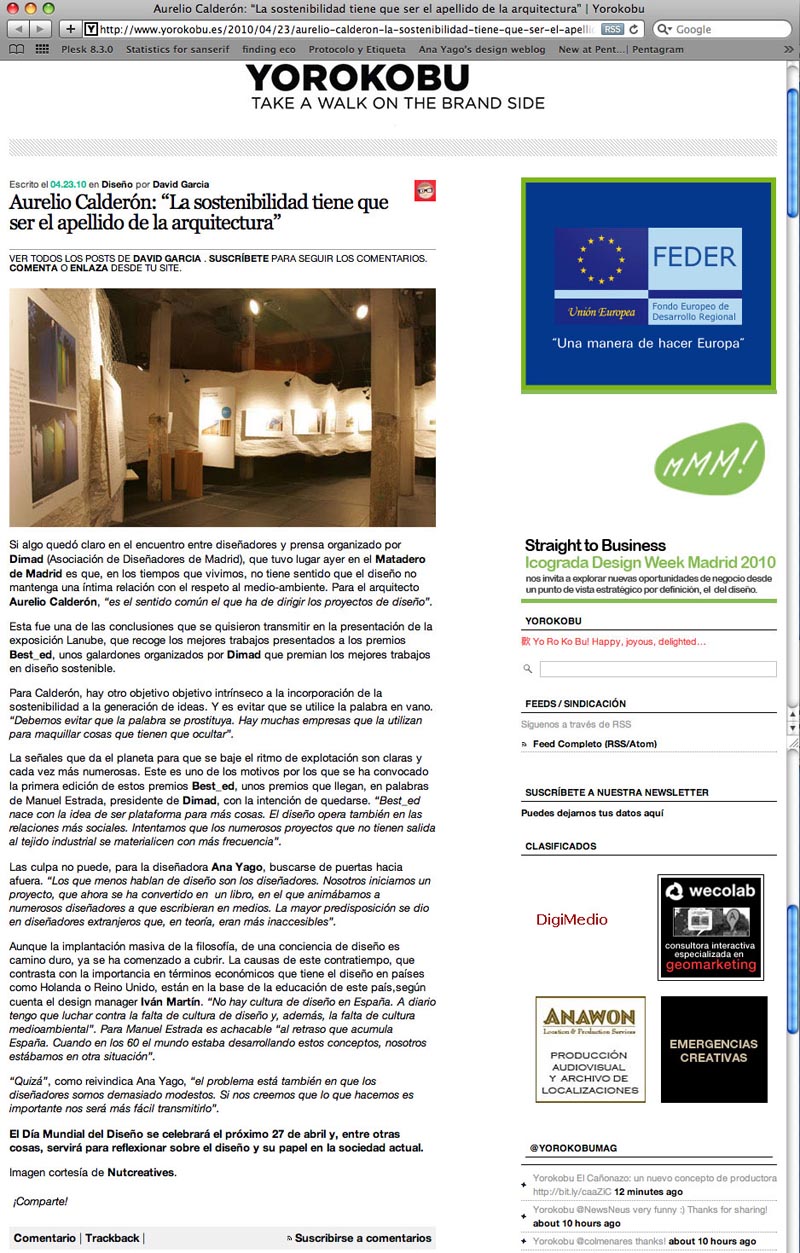 Extracto del artículo: Las culpa no puede, para la diseñadora Ana Yago, buscarse de puertas hacia afuera. “Los que menos hablan de diseño son los diseñadores. Nosotros iniciamos un proyecto, que ahora se ha convertido en un libro, en el que animábamos a numerosos diseñadores a que escribieran en medios. La mayor predisposición se dio en diseñadores extranjeros que, en teoría, eran más inaccesibles”.