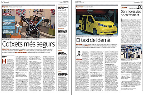 Extracto: (•••) Sanserif Creatius, coneguts per les seues col•leccions de mobiliari biodegradable i els seus projectes sostenibles, que comprenen des de l’interiorisme i el desenvolupament de marques fins a projectes editorials, han dissenyat a més de l’Eye Baby altres productes innovadors per a Eye Child. Encara no s’han comercialitzat i María del Pino prefereix no revelar els detalls d’aquests productes, com assegura, “únics al mercat o que milloren els existents”. El que sí que explica obertament és que una línia de productes seran joguines a través de les quals els nens expressen quin és el seu estat emocional perquè els adults puguen interpretar-lo. L’altra línia seguirà insistint en la seguretat viària dels més petits dins dels nuclis urbans optimitzant la senyalització. (•••) Más en Avui.