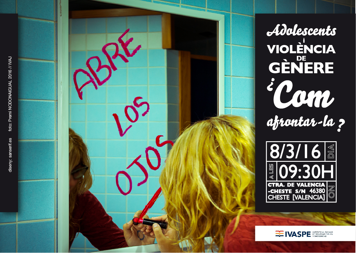 Cartel desarrollado por Sanserif.es para la campaña contra la Violencia de Género “Abre los ojos” para el Instituto Valenciano de Seguridad Pública y Emergencias (IVASPE) realizado sobre la imagen galardonada en los Premios NODONAIGUAL 2016 del Institut Valencià de la Joventut (IVAJ). Un proyecto impulsado por el especialista en lucha contra la violencia de género José Antonio Burriel, presidente de la Asociación No Más Violencia de Género y Premio Nacional del Instituto de la Mujer 2005.