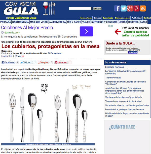 Con mucha gula · Cubiertos de Santiago Sevillano y Sanserif Creatius