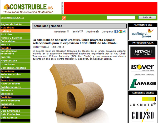 14 Ene Construible: La silla Bold de Sanserif Creatius, único proyecto español seleccionado para la expoxición ECOFUTURE de Abu Dhabi