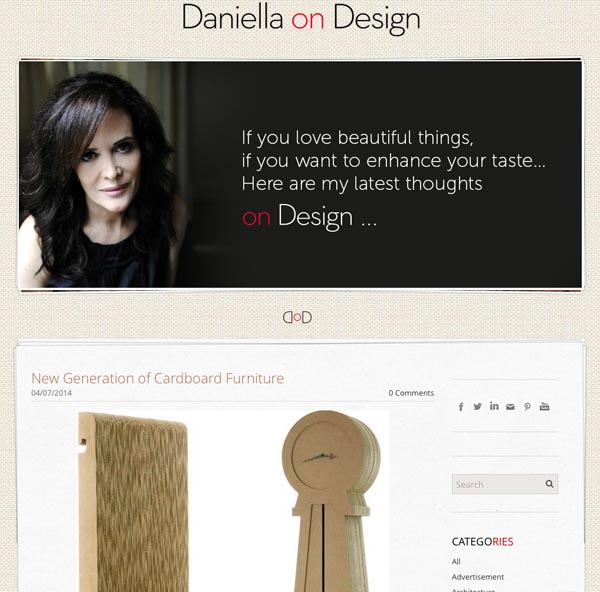 Advance: (···) Ever since Frank Gehry introduced his Easy Edges cardboard furniture in 1972, the material has become sensational when utilized in furniture and has since acquired the connotation of green design. Now, pieces of furniture made of recycled corrugated cardboard will be shown in the Milan Design week at Salone del Mobile in Milan, participating in an exhibition entitled “Anatomy of Design,” in the district of Tortona. The Spanish representation will be in charge of the Valencian designers Sanserif Creatius, which will present a selection of furniture and lamps made with recycled corrugated cardboard. Particularly intriguing is the Grandfather Clock, a clock of almost 2 metres, which imitates the dies and mechanisms of the classics (···) More info at Daniella Ohad Blog