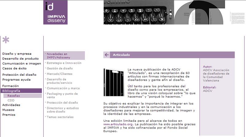 Gracias al IMPIVA y la ADCV, el primer volumen se hizo realidad. Las muchas demandas de un libro que nació como edición limitada –sólo 2.000 ejemplares- y los articulistas que no pudieron entrar en el primer volumen, nos llevaron a plantearnos la necesidad de una segunda edición. El IMPIVA se mostró favorable. El Colegio de Diseñadores de Interior de la Comunidad Valenciana quiso -quiere- respaldar el proyecto… y la recesión económica, lo retrasará, al menos un año.