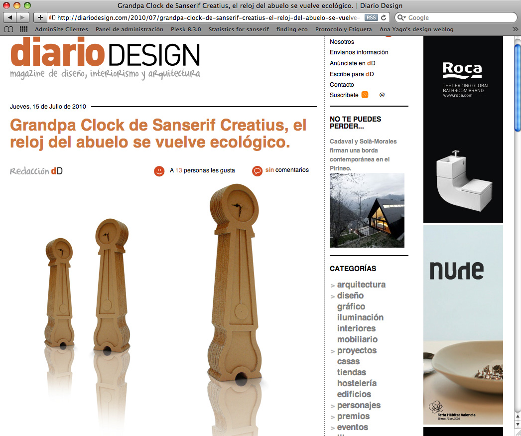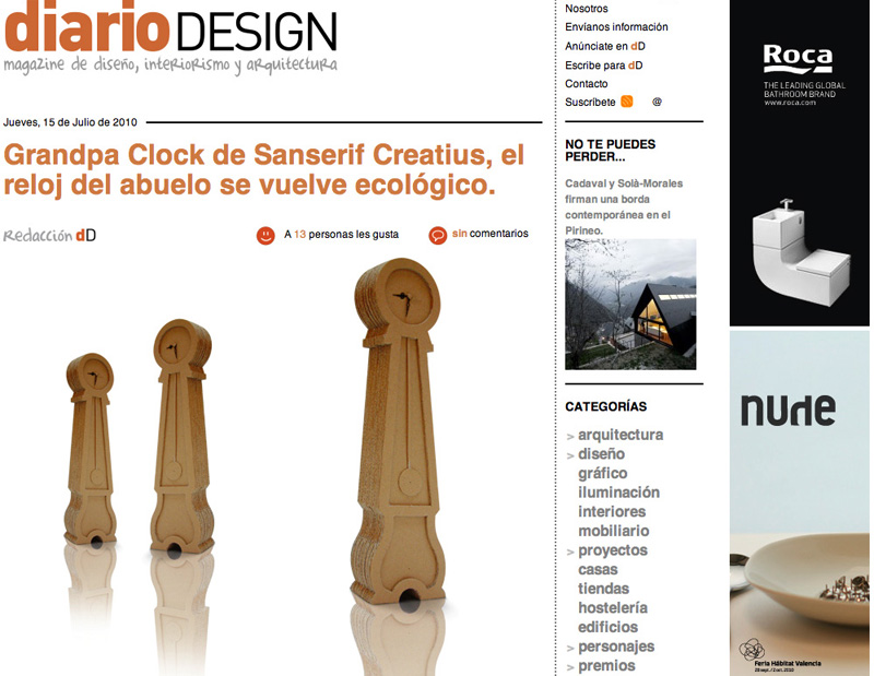 El magazine on line de tendencias sobre diseño y arquitectura diarioDESIGN ha destacado el último trabajo de los valencianos Sanserif Creatius como unos de los “must” de este verano. La pieza, un reloj de pie realizado en cartón reciclable, forma parte de la colección desarrollado por este equipo de diseñadores con vocación social y ecológica.