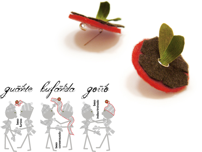 Al introducirlo en la ropa como un complemento más, facilitamos que los españoles cuenten con un ramillete de muérdago accesible en todo momento y que, según se luzca, abre nuevas posibilidades. Y, como ejemplo, la diseñadora valenciana ha explicado que, si lo vestimos en la bufanda, permite que los amantes se den un “beso consentido, mientras que si lo llevamos en el guante entramos en la categoría de “beso furtivo”. Y los más audaces pueden ubicarlo en un gorro para dar “besos indiscriminados”.