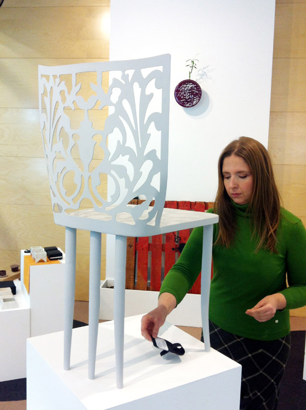 Ana Yago junto a la Silla Peineta en el set del Centro de Artesanía