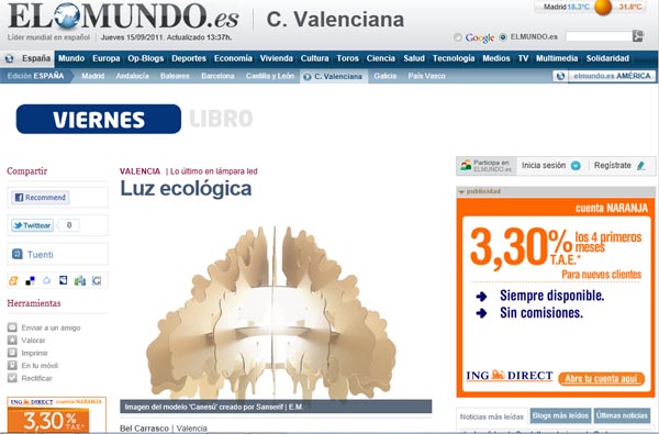 Extracto: Una lámpara pensada para decorar grandes espacios con el mínimo impacto ambiental y la máxima eficiencia energética. Es la última creación de los diseñadores valencianos Sanserif Creatius, que se presenta este jueves en la muestra ‘My cHair needs a haircut’, dentro de las exposiciones de la Valencia Disseny Week (VDW), que se desarrolla junto a la Feria Hábitat Valencia.