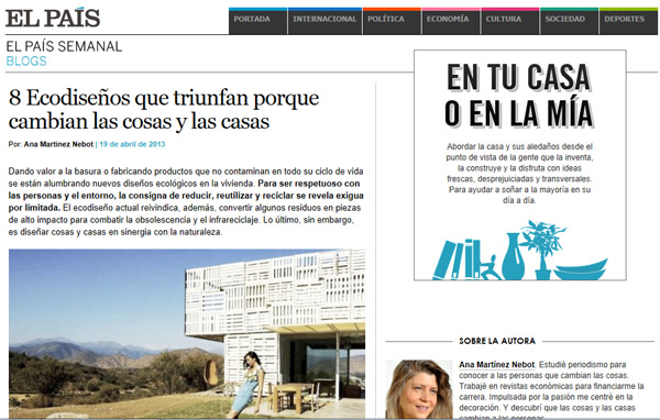 19 Abr El País: 8 Ecodiseños que triunfan porque cambian las cosas y las casas