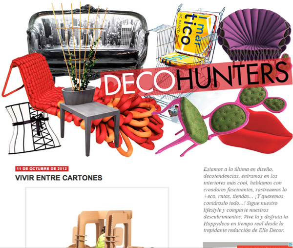 Extracto: Desde aquí rompo una lanza (de cartón, claro) por este material, humilde y nada pretencioso; aparentemente gris, soso y feo, pero con la capacidad latente de transformarse en cosas asombrosas. Bien tratado puede ser increíblemente resistente y es, flexible, ligero, económico, reciclable, ecológico… (···) Y también, los diseñadores valencianos de Sanserif Creatius, Ana Yago Pallás y José Antonio Giménez practican la cartonmanía. Su banco “Bold” es una de las piezas que más me gustan. Más info en Ell Deco.