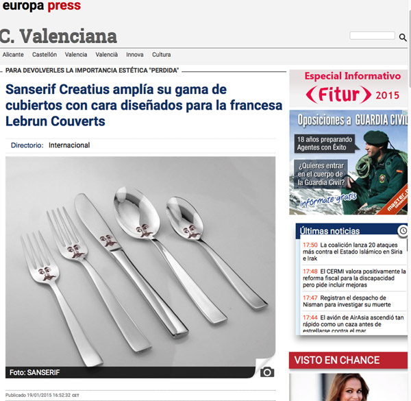 22 Ene Europa Press: Sanserif Creatius amplía su gama de cubiertos con cara diseñados para la francesa Lebrun Couverts