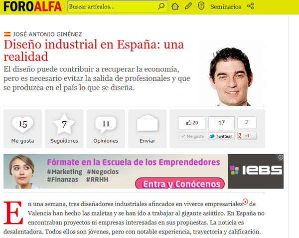 13 Abr Foro Alfa: Diseño industrial en España, una realidad