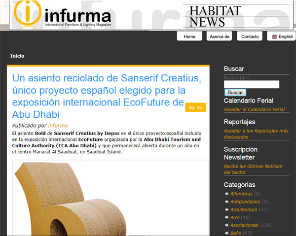 23 Ene Infurma: Un asiento reciclado de Sanserif Creatius, único proyecto español elegido para la exposición internacional EcoFuture de Abu Dhabi