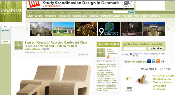 08 Abr Inhabitat: Sanserif Creatius’ Recycled Cardboard Chair Hides a Footrest and Table In Its Seat