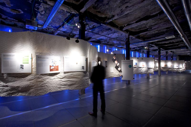 Y allí, entre una maraña de alambres, telas metálicas y superficies vaporosas, el banco Bold de Sanserif Creatius comparte espacio con los pavimentos ecológicos de Cosentino, el nuevo lavabo eficiente de Roca W+W o el pabellón español de la Expo de Zaragoza, desarrollado por mangado y Asociados.