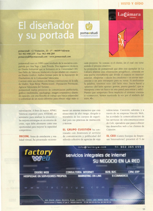 El número 120 de la revista de la Cámara de Comercio de Valencia incluye el artículo El peso de los ochenta, una reflexión sobre los excesos cometidos y la influencia del diseño y los diseñadores en la década de los ochenta. El artículo forma parte de los textos que publicó Ana Yago cuando era socia y directora creativa de pomaestudi.