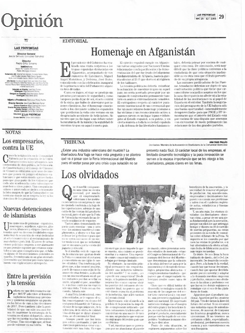 20 Dic “LOS OLVIDADOS” DE ANA YAGO EN EL DIARIO LAS PROVINCIAS