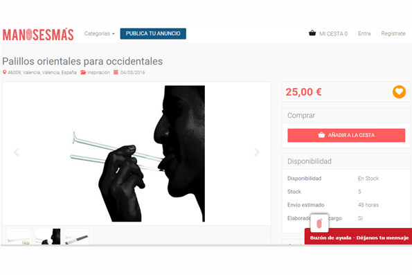 Los palillos orientales para occidentales -Dragon hashi- de Sanserif Creatius ya se pueden adquirir en el portal ManosEsMas, una nueva iniciativa de venta de productos artesanales con vocación contemporánea. Estos palillos realizados en borosilicato y con mejoras técnicas para el agarre se producen en colaboración con la vidriera Sara Sorrines, y se presentan en un elegante packaging personalizable para regalo. Más info en ManosEsMas