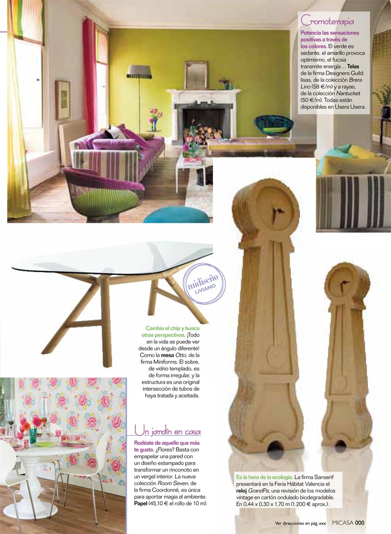 La sección de novedades del último número de la revista Mi Casa destaca al reloj de pié biodegredable GrandPa de Sanserif Creatius como una pieza para “renovarse y… ¡vivir!”. Una magnifica forma de sintetizar la nueva creación de Ana Yago y José Antonio Giménez que, como dice Susana González, “de vuelta de vacaciones, pletóricos de energía”… preparan la exposición Three Little Pigs para Feria Hábitat Valencia.