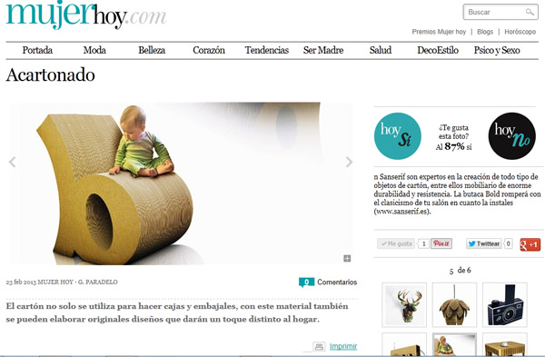 Extracto: En Sanserif son expertos en la creación de todo tipo de objetos de cartón, entre ellos mobiliario de enorme durabilidad y resistencia. La butaca Bold romperá con el clasicismo de tu salón en cuanto la instales. Más info Mujer de Hoy o Sanserif.es