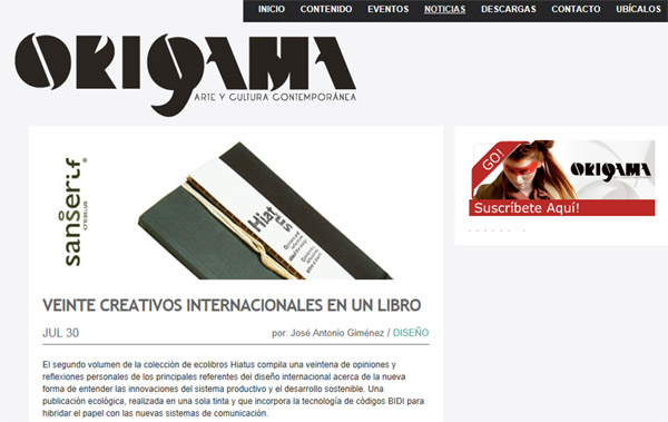 Extracto: (···) Así, al elenco de autoridades y destacados profesionales del diseño del primer volumen, caso de Jasper Morrison, Li Edelkoort o Nacho Carbonell, se unen ahora -además de los ya citados- Aart van Bezooyen, Keiko Hirano, Jaime Derringer o los valencianos Sanserif Creatius y Paco Bascuñán, cuya colaboración se ha plasmado en un artículo póstumo sobre la forma de entender el proceso de creación a través del conocimiento de lo cotidiano y los referentes culturales próximos. (···) Más información en Origama.