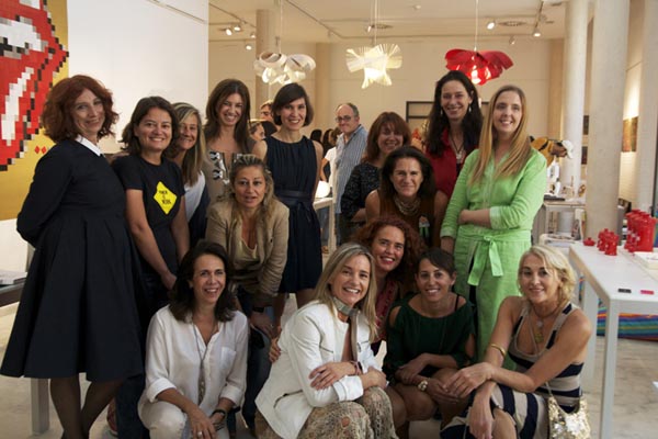Solo hacía unos minutos que se habían abierto las puertas de la exposición Serie Limitada, cuando entró Paloma Dominguín. Y así encontramos nuestra musa, tras ella el desfile de personajes y visitantes fue constante. Nos trajo tanta suerte como alegría, repartiendo abrazos, besos y parabienes entre todas las participantes y, por supuesto, probó todos y cada uno de los muebles que teníamos en el espacio de Sanserif Creatius.