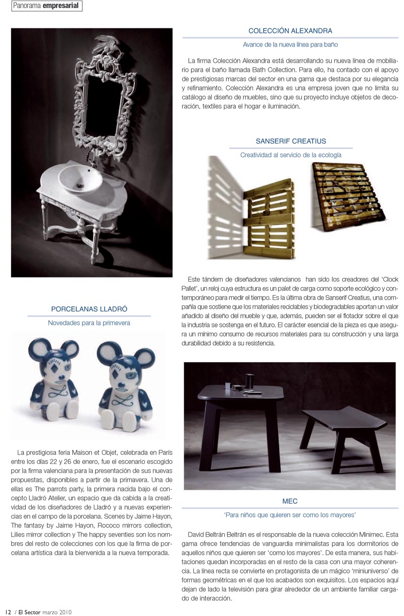 Creatividad al servicio de la ecología. La sección panorama empresarial de El Sector recoge la última propuesta de Sanserif Creatius, un reloj contemporáneo configurado sobre la base de un palet de carga.