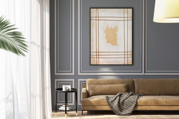 Cuadro de 95 x 77 cm. Acrílico, cáñamo y yute sobre madera terciada de abedul y bastidor de 35mm. Marco caja flotante de ayous natural.