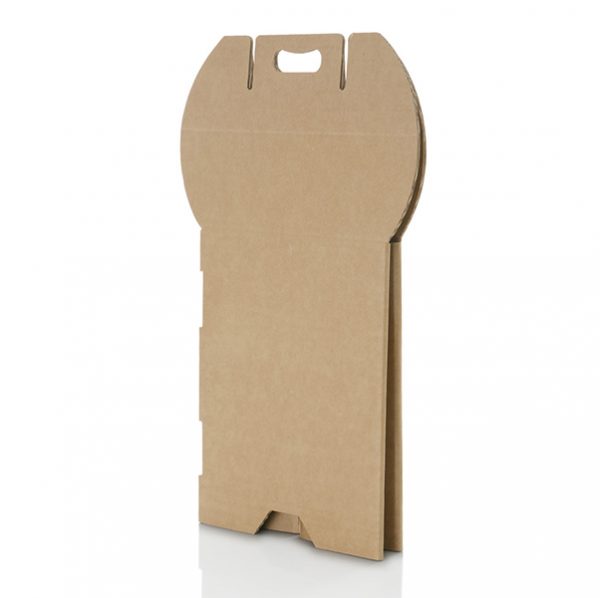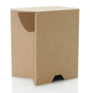 Realizado en cartón ondulado reciclado con certificación FSC. Soporta hasta 250 kg. Y sus medidas estándar son 43 x 28 x 32 cm.