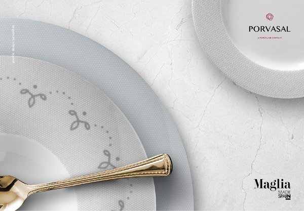Esta nueva colección presenta cuatro elegantes composiciones, cuyos detalles se complementan ofreciendo versatilidad y funcionalidad a la mesa, al tiempo que recupera el posicionamiento de Porvasal como líder indiscutible del sector en España. La sofisticación de esta nueva colección de vajilla clásica combina las formas contemporáneas y las cenefas tradicionales.