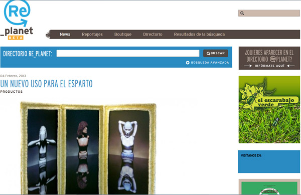 Extracto: Este marco natural, realizado artesanalmente, abre una nueva vía de negocio al procesado tradicional del esparto, que se está perdiendo en España, al tiempo que posiciona este material natural en un sector al que hasta la fecha no había tenido acceso; El arte, tal y como ha explicado, Ana yago, directora de Sanserif Creatius. Más info REplanet o Sanserif.es