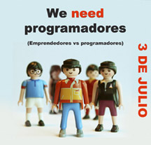 Sanserif Creatius participó ayer en la jornada We Need Programadores organizada por el Instituto Ideas de la Universidad Politécnica de Valencia (UPV). Una jornada fantástica en la que varios programadores y emprendedores intercambiamos proyectos y conceptos para generar nuevos modelos de negocio y start-ups. Una iniciativa más que recomendable que permite hacer mini-brainstormings sobre apps, programación en diferentes lenguajes y multiplataforma, etc.