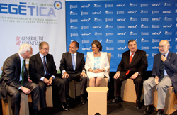 En la foto: el President de la Generalitat, Francisco Camps, junto a (de derecha a izquierda de la imagen), Manuel Toharia, presidente de Egética, Pedro López, presidente de Unión Fenosa, Rita Barberá, alcaldesa de Valencia, Francisco Camps, President de la Generalitat, Salvador Gabarró, presidente de Gas Natural y Javier Villalba, director de Redes de Negocio de Iberdrola, durante la clausura de Egética.
