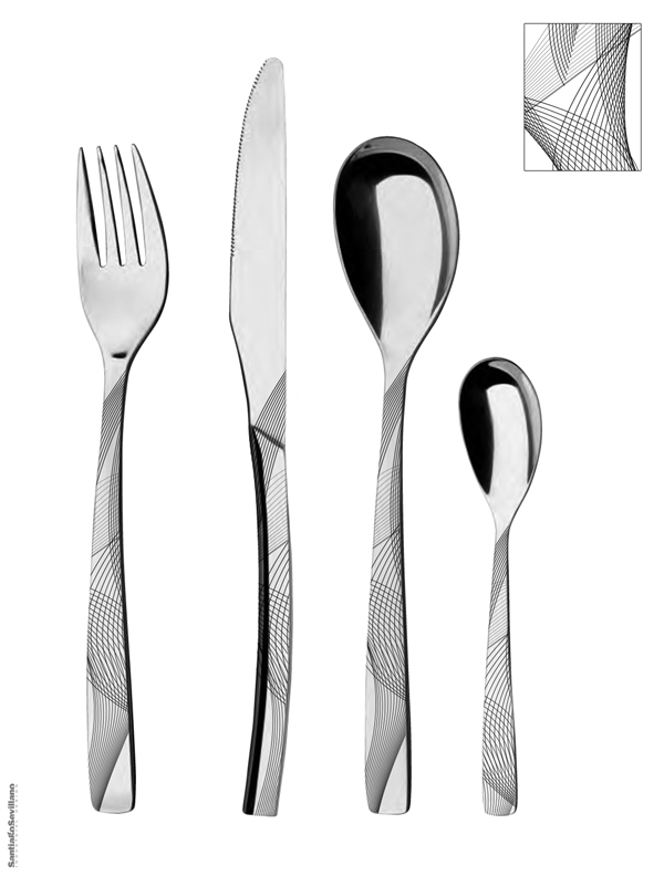 Por ello, Santiago Sevillano, que ya colabora habitualmente con la empresa de cubertería, decidió contar con la experiencia de Sanserif Creatius y, trabajando en conjunto, ambos estudios han apostado por renovar el concepto de cubertería contemporáneo con la incorporación de un tratamiento gráfico de inspiración orgánica y geométrica, pero también con influencias vintage e incluso metafóricas, reorientando el minimalismo de líneas de cubertería como Cavana o Ipanema de la centenaria firma francesa Lebrun Couverts.