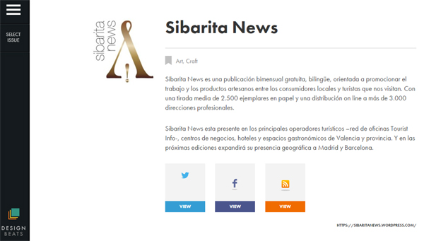 Diseño y Artesanía. Así, gracias a la apuesta del estudio de diseño de Sanserif Creatius, y al apoyo de diversas asociaciones del sector y particularmente del Centro de Artesanía de la Comunidad Valenciana, Sibarita News se ha convertido en el espejo de la actividad del sector y en un canal para presentar el trabajo de sus profesionales en eventos internacionales