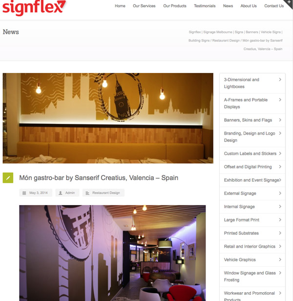 Advance: (···) The ambiguity of the sun mutating as a moon is the card of Món gastro-bar, one of the latest proposals of of the Sanserif Creatius team, in Valencia. A 600 square meters local that mixes eclectic references of the major world capitals to accompany the visitor in an unforgettable experience with “tapas” or intimate dinners with flashlights (···) More info at Singflex