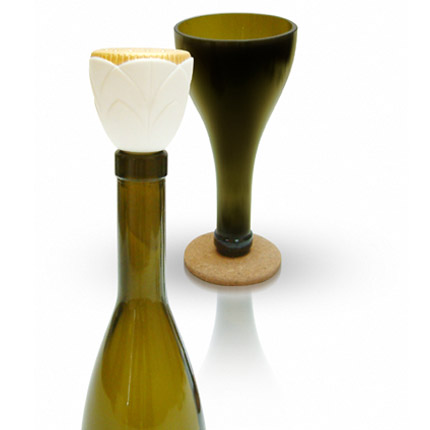 Esta colección, denominada Wineries, pretende revisar el concepto de cristalería y apostar por alargar la vida de las botellas de vino mediante un proceso de adaptación que las convierte en copas y vasos totalmente funcionales, al tiempo que fomenta su reutilización y/o reciclaje, ya que finalmente pueden integrarse en el ciclo integral del mismo modo que lo hacen los envases de vidrio ya utilizados.