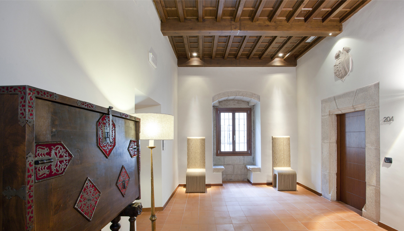 Hoy Extremadura • Blogs 04/01/2013 Extracto: (•••) Cuando paseamos por sus laberínticas estancias ,vemos  como el granito, el  barro y  la madera se unen  en armoniosos y NUEVOS espacios acogedores,que de ellos  se han conservado los techos de madera en los salones, los  sobrios ventanales o...
