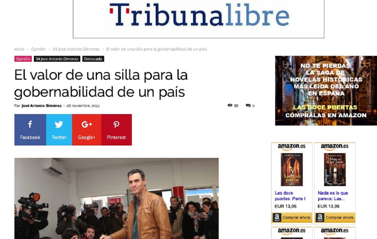 Fuente: Tribuna Libre Hay un refrán tradicional que dice que “no importa tanto que hay sobre la mesa, si no lo que hay sobre la silla” y parece acertado recuperarlo ahora que las sillas tienen más importancia que las mesas para la gobernabilidad de España. E...