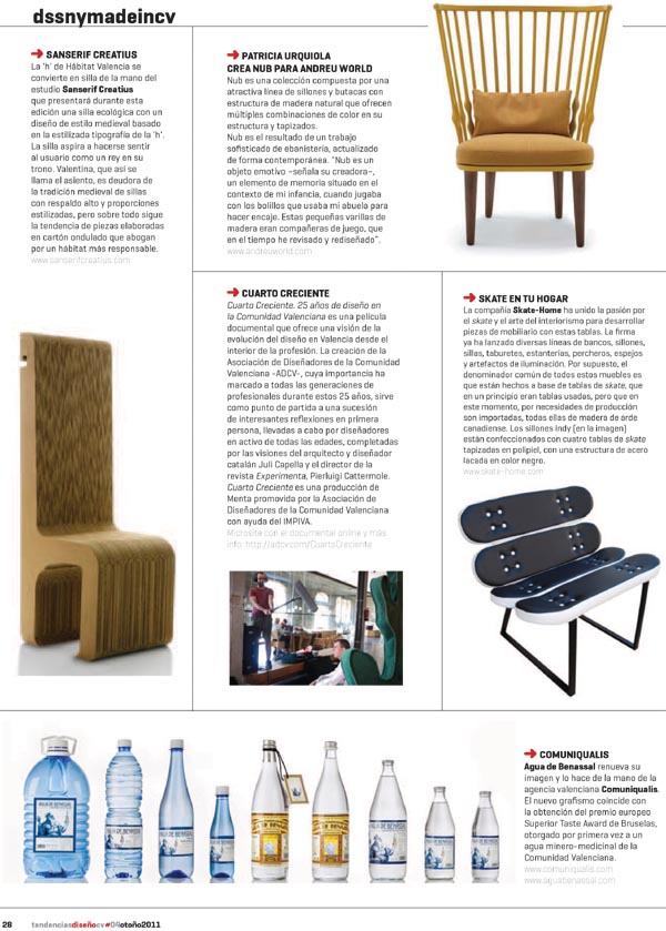 Extracto: La “h” de Hábitat Valencia se convierte en una silla de la mano del estudio Sanserif Creatius que presentará durante esta edición un asiento ecológico con un diseño de estilo medieval basado en la estilizada tipografía de la “h”. La silla aspira a hacer sentirá al usuario como un rey en su trono. Valentina, que así se llama el asiento, es deudora de la tradición medieval de sillas con respaldo alto y proporciones estilizadas, pero sobre todo sigue la tendencia de piezas elaboradas en cartón ondulado que abogan por un hábitat más responsable.