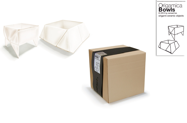 En este sentido, Origámica es una colección de piezas que formalmente parten del arte de origen japonés consistente en el plegado de papel, conocido como origami, pero que explora ahora un material como el silicato para fabricar recipientes, vasijas y otros objetos de arcilla, u otro material cerámico, que por acción del calor se transformen en recipientes en los que apreciamos los pliegues del papel que les sirvió de modelo.