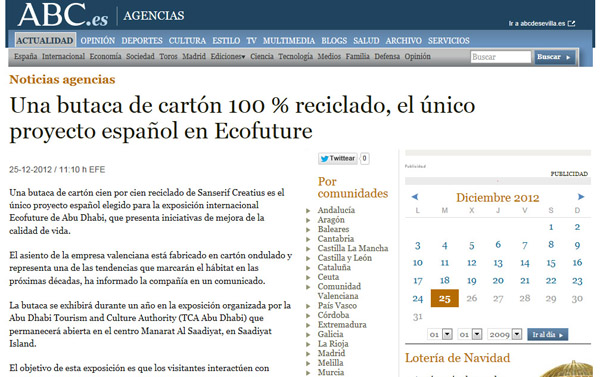 29 Dic Una butaca de cartón cien por cien reciclado, único proyecto españo en EcoFuture