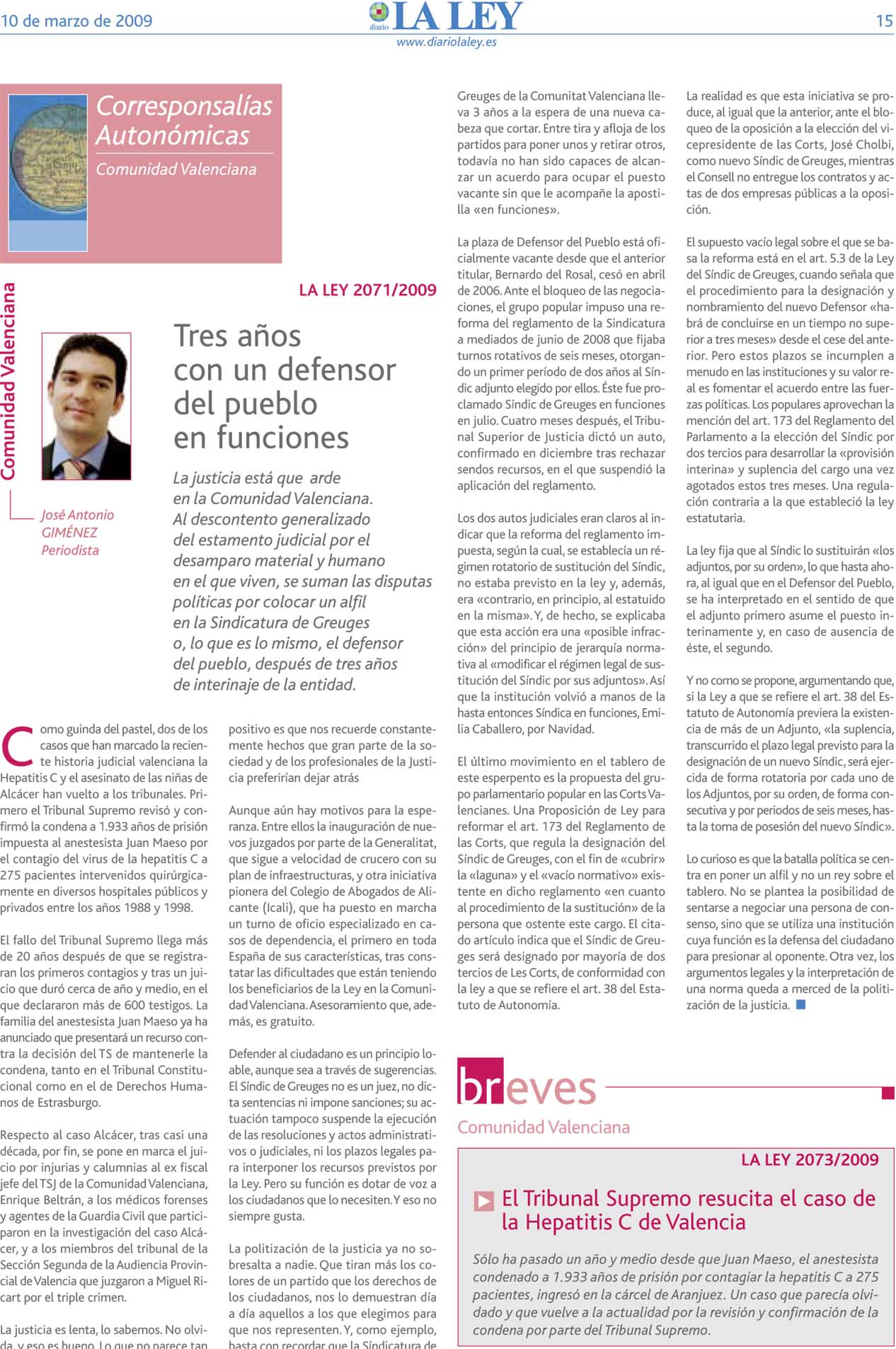 La Ley incluye un artículo de opinión del director de comunicación de Sanserif Creatius, José Antonio Giménez, sobre los vaivenes y las luchas de poder en la Sindicatura de Greuges de la Comunidad Valenciana.