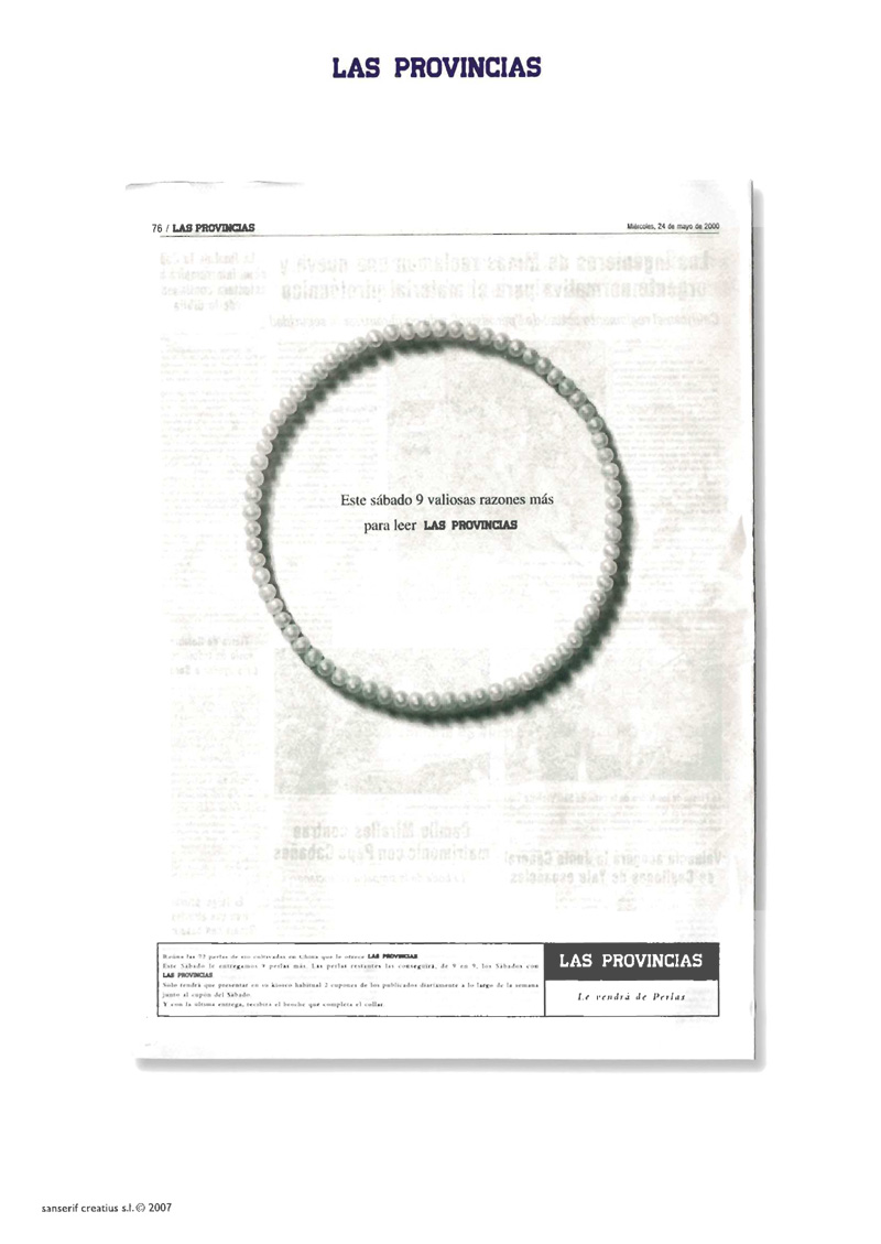 De esto hace ya casi 8 años… pero merece lapena recuperar alguno de esos trabajos. Hoy incluyo la edición de la historia del Valencia C.F., la colección de panuelos de Yanes, las perlas conmemorativas del año del rediseño de Las Provincias -menuda aventura fue eso para una diseñadora- o las pulseras tibetanas… Recuerdos. Muchos recuerdos.