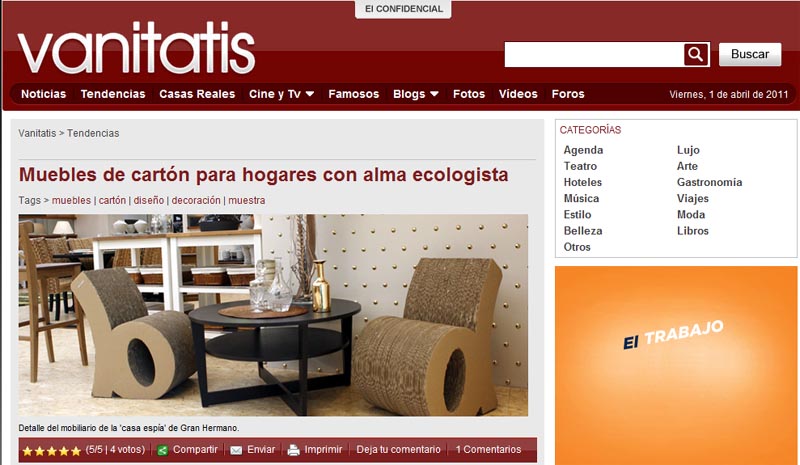 Vanitatis: Muebles de cartón para hogares con alma ecologista
