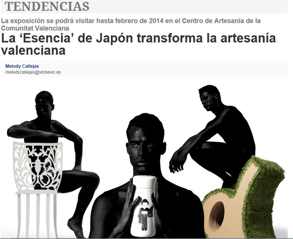 Extracto: “(···) La artesanía japonesa es el eje temático de esta novedosa exposición donde la habilidad de una veintena de artesanos llegados de Valencia, Castellón y Alicante ha moldeado artículos de la artesanía tradicional española manteniendo la esencia propia del país del sol naciente. Esta exposición, que tiene precisamente como título ‘Esencia’, forma parte de los eventos que conmemoran el Año dual España-Japón, coincidiendo con el 400 aniversario del envío de la Embajada Keicho a Europa (···)” Más info en VLC News
