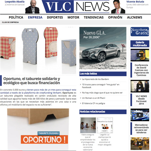 09 May VLC News: Oportuno, el taburete solidario y ecológico que busca financiación