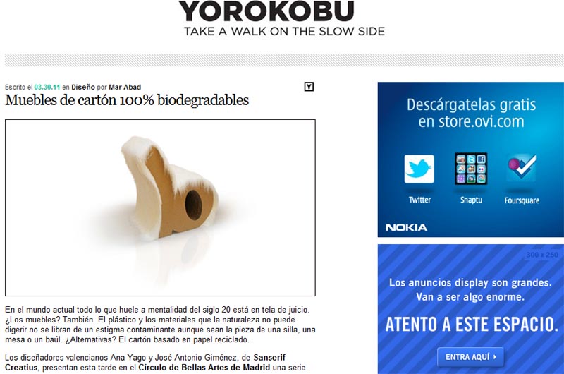 13 Abr Yorokobu: Muebles de cartón 100% biodegradables